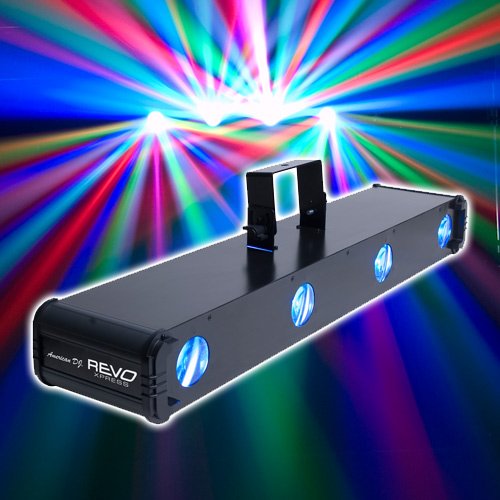 American DJ Revo Xpress is like having 4 fixtures in one creating a dazzeling effect that covers a good sized area. The programs are diverse but best of all the unit draws less than 30 watts. Run stand alone master slave or DMX512 Brilliant colors and programs make this light dynamic and the illusion that you spent hours programming a lightshow in a bar ready to plug and play, can be linked by XLR cable with multiple units and synchronized uses less than 30 watts and produces virtually no heat GAmerican DJ Revo Xpress is like having 4 fixtures in one creating a dazzeling effect that covers a good sized area. The programs are diverse but best of all the unit draws less than 30 watts. Run stand alone master slave or DMX512 Brilliant colors and programs make this light dynamic and the illusion that you spent hours programming a lightshow in a bar ready to plug and play, can be linked by XLR cable with multiple units and synchronized uses less than 30 watts and produces virtually no heat G... Read More